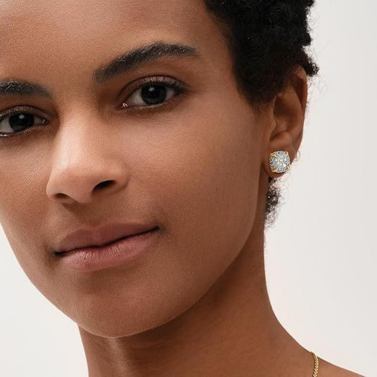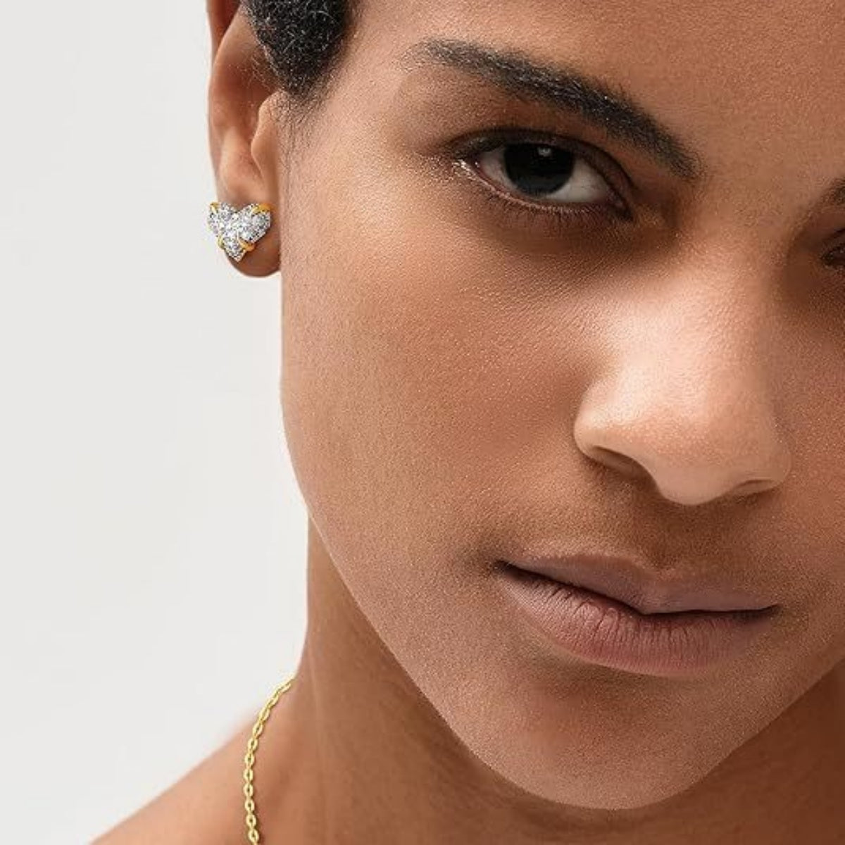 These earrings, covered in sparkling diamonds and paired with an elegant gold setting, come in various shapes. Sleek, glamorous—perfect for adding shine to any look.